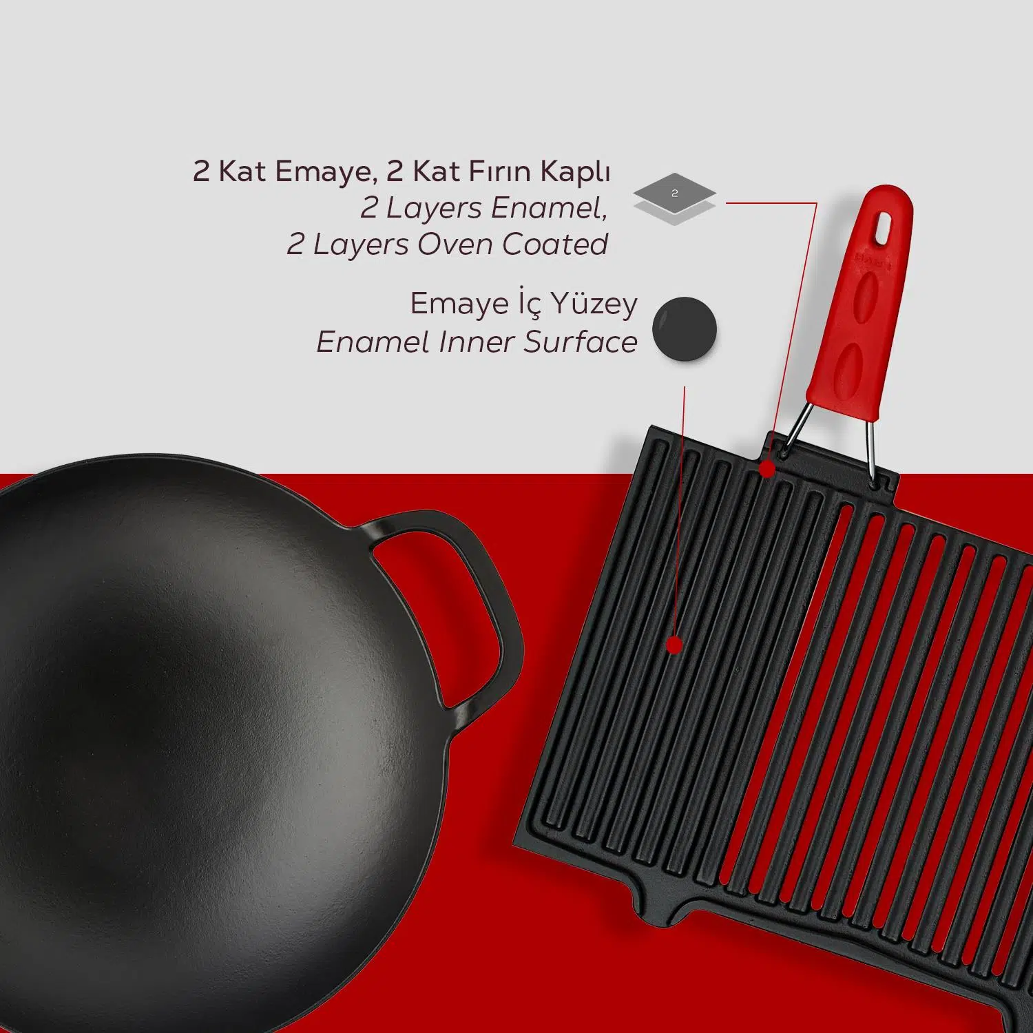 Döküm Demir Tava Tencereler; dünyada sadece birkaç firmada bulunan yüksek emaye kaplama teknolojisi sayesinde bulaşık makinesinde yıkanır, pratik ve kolay temizlenir. Bu sebepten diğer rakiplerinin emaye yapısından daha dayanıklı, daha kullanışlı ve teknik olarak daha üstündür.