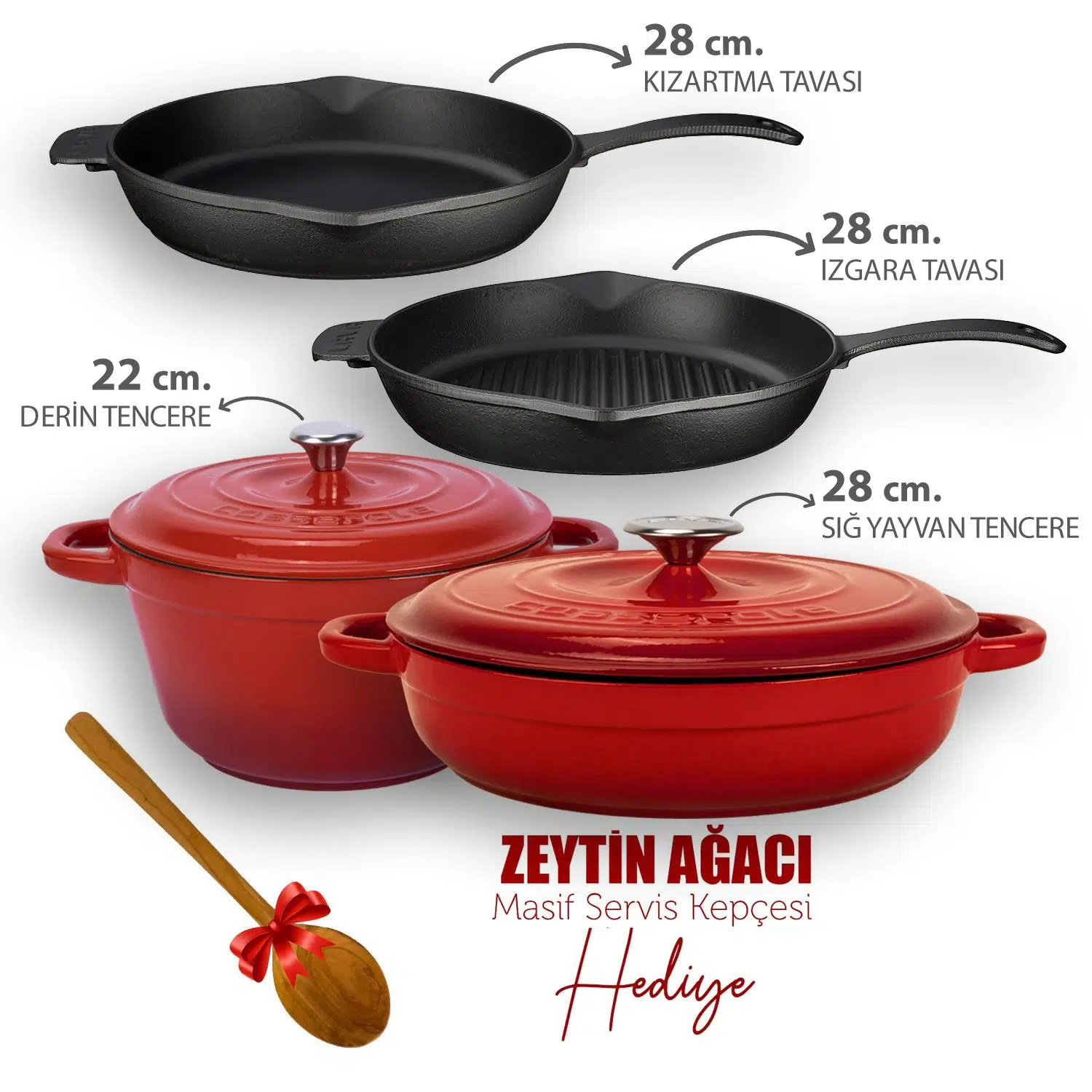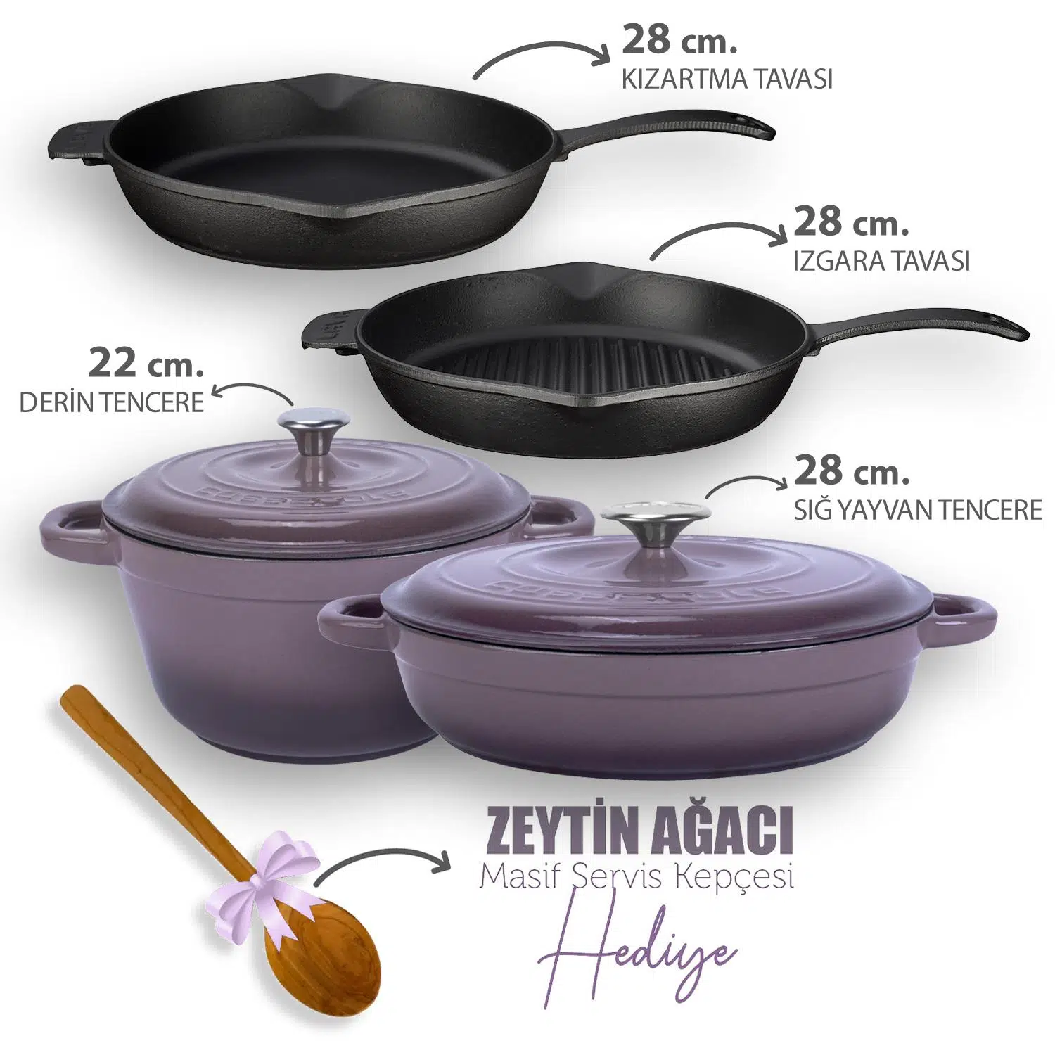 | Etiketler | Lava Döküm 4X New Heritage Serisi Döküm Demir Tencere Tava Çeyiz Seti |