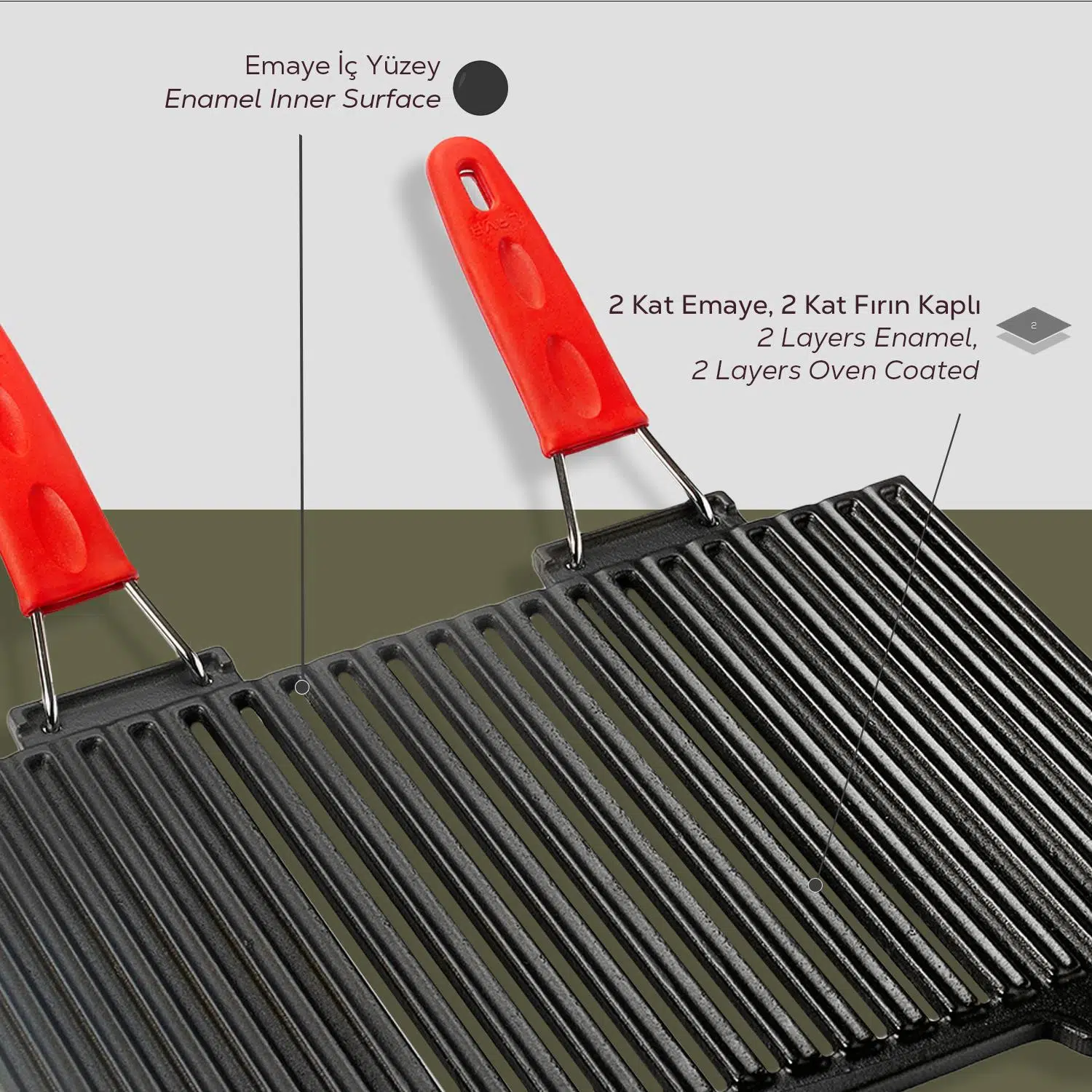 LAVA Döküm Izgarası, mühürleme yöntemi ile sizi ağız sulandıran yemeklerle buluştururken, istenmeyen su salınımını önleyerek besin değerlerinin kaybolmasını engeller. %100 geri dönüştürülebilir ve kanserojen içermeyen LAVA’nız, sağlıklı yaşam ve sürdürülebilir bir çevre için mutfağınızda atabileceğiniz bir adımdır.