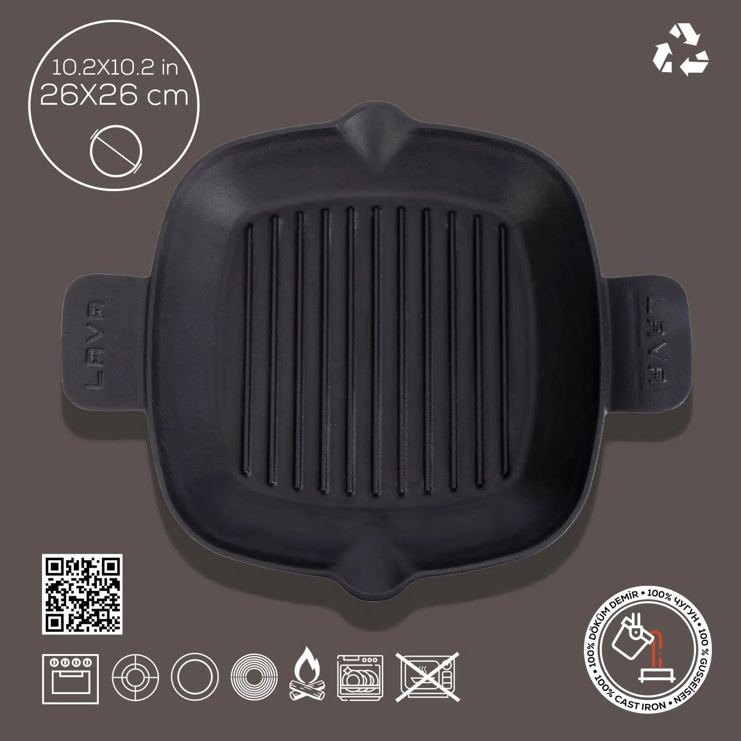 | Etiketler | Lava Döküm Izgara Tavası Döküm Demir Yekpare Çift Kulplu Ölçü 26x26cm. |