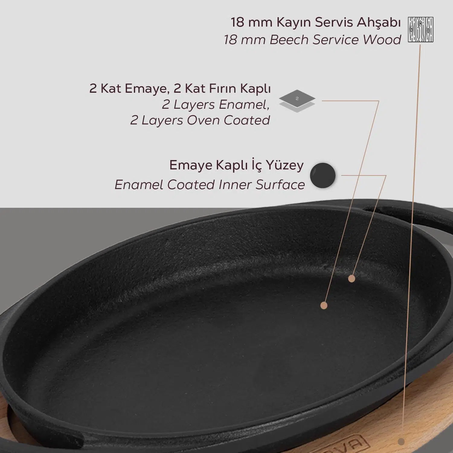 | Etiketler | Lava Döküm Oval Sahan Döküm Demir Yekpare Çift Kulplu Kayın Servis Ahşabı Ölçü 15x10cm. |