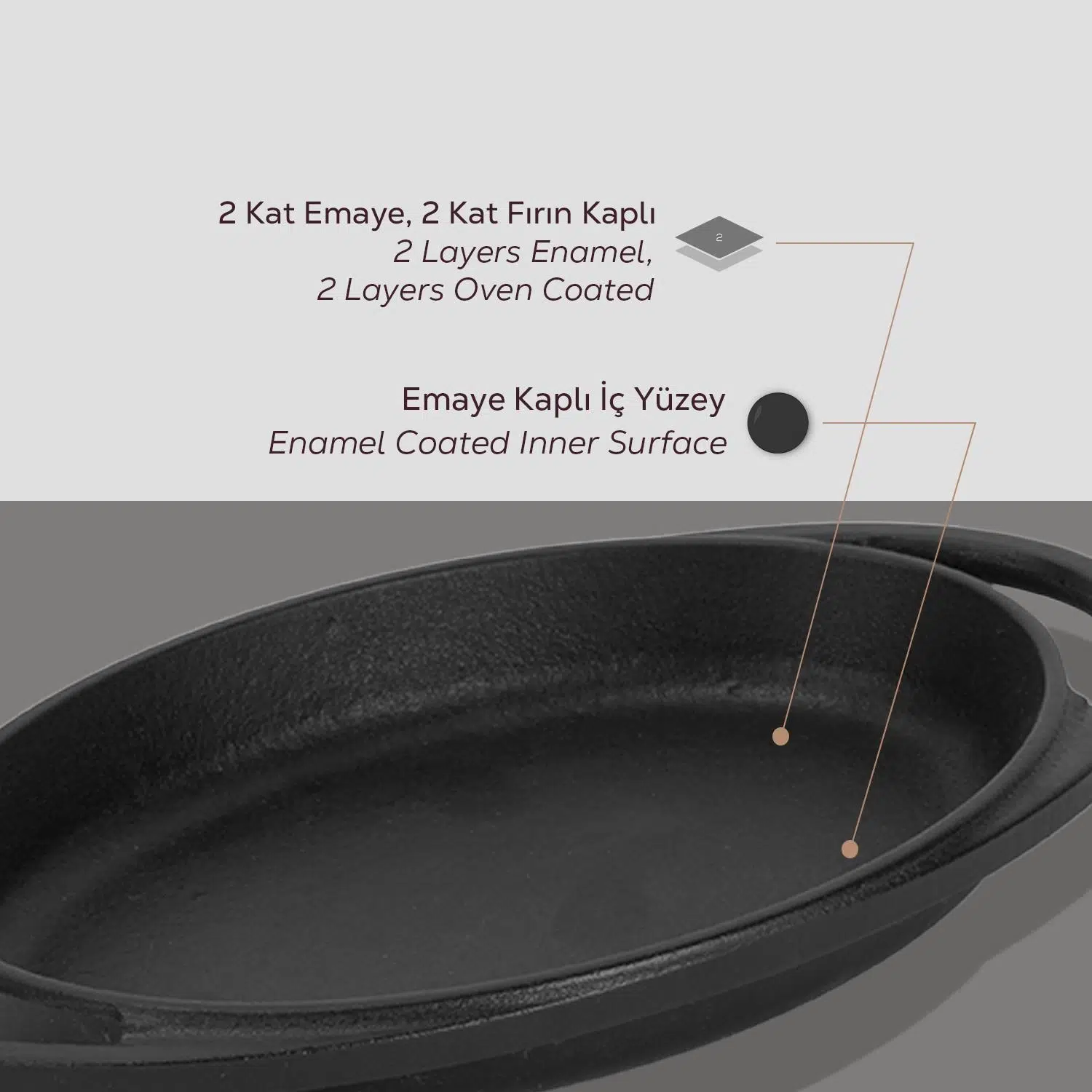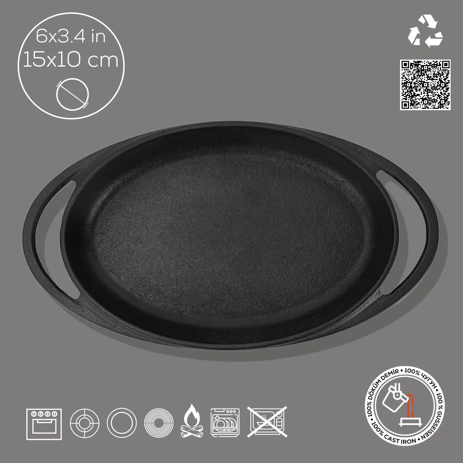 | Etiketler | Lava Döküm Oval Sahan Döküm Demir Yekpare Çift Kulplu Ölçü 15x10cm. |