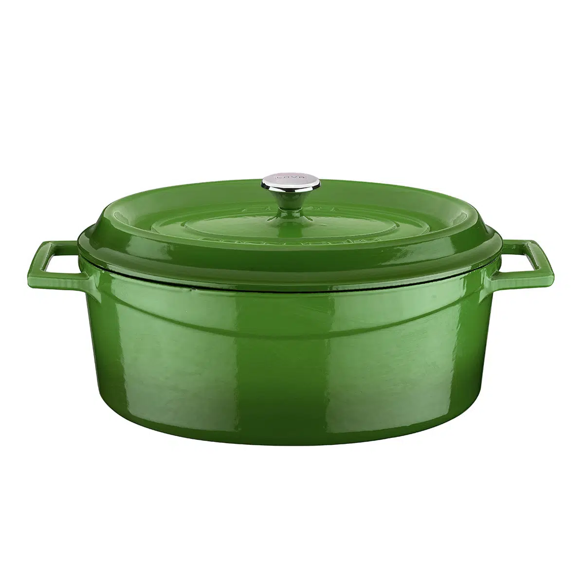Birbirinden renkli LAVA Döküm Trendy Tencereler, artık oval şekilleriyle yemek takımlarınızı tamamlıyor. Geniş boyut seçenekleri sayesinde LAVA Döküm Oval Trendy Tencere’niz ile leziz yahnilerin ve zeytinyağlı sebze yemeklerinin yanı sıra; tavuk, kaz, ördek vb. kanatlı hayvanları da kolaylıkla pişirebilirsiniz.