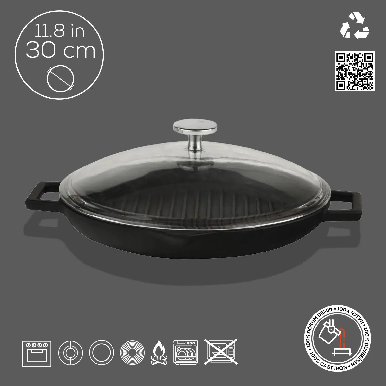 | Etiketler | Lava Döküm Yuvarlak Izgara Tavası Cam Kapaklı Döküm Demir Yekpare Çift Kulplu Çap(Ø)30cm. |