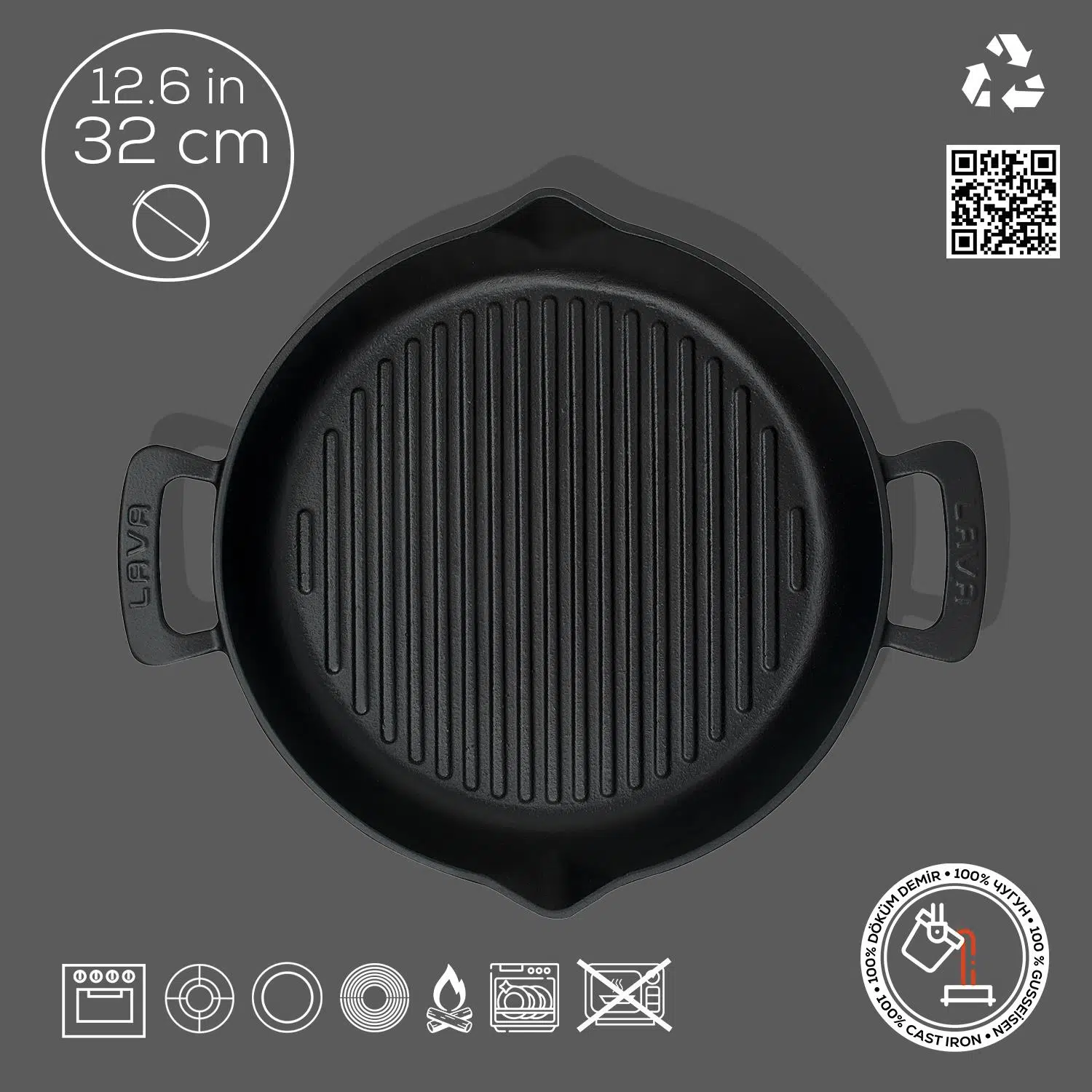 | Etiketler | Lava Döküm Yuvarlak Izgara Tavası Döküm Demir Yekpare Çift Kulplu Çap(Ø)32cm. |