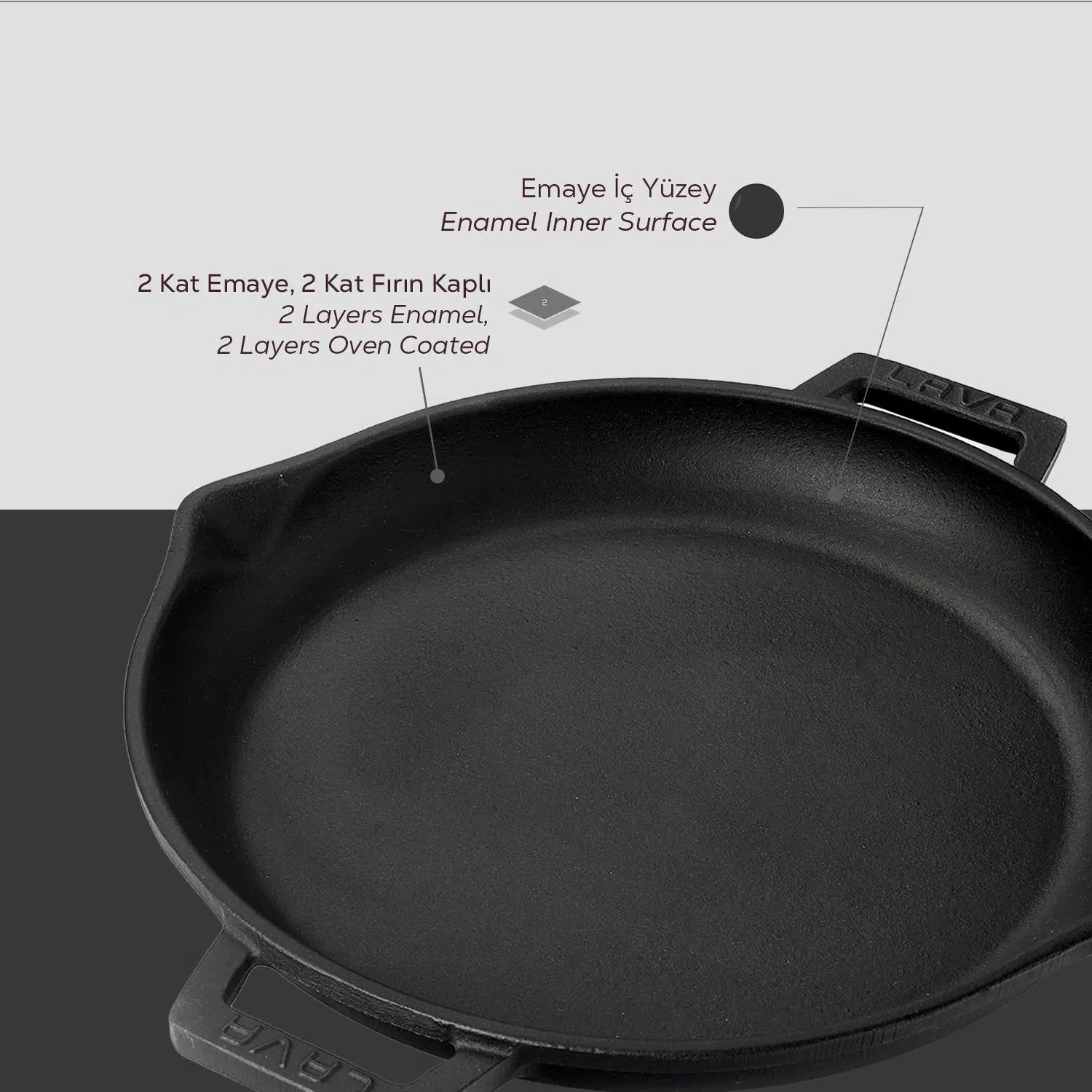 Çift kulpu sayesinde rahat bit tutuş sağlayan LAVA Döküm 30 cm Yuvarlak Kızartma Tavası ile kalabalık gruplar için et ve balık kızartabilir, sebze soteleyebilir veya dünya mutfaklarından esinlenerek yaratıcı bir kızarmış pirinç yapabilirsiniz. Pratik yağdanlıkları ile de yağ ve su gibi sıvıları boşaltabilir, etkileyici soslar servis edebilirsiniz. Aynı zamanda, mühürleme yöntemi ile mangal tadında lezzetler hazırlayabilirsiniz.