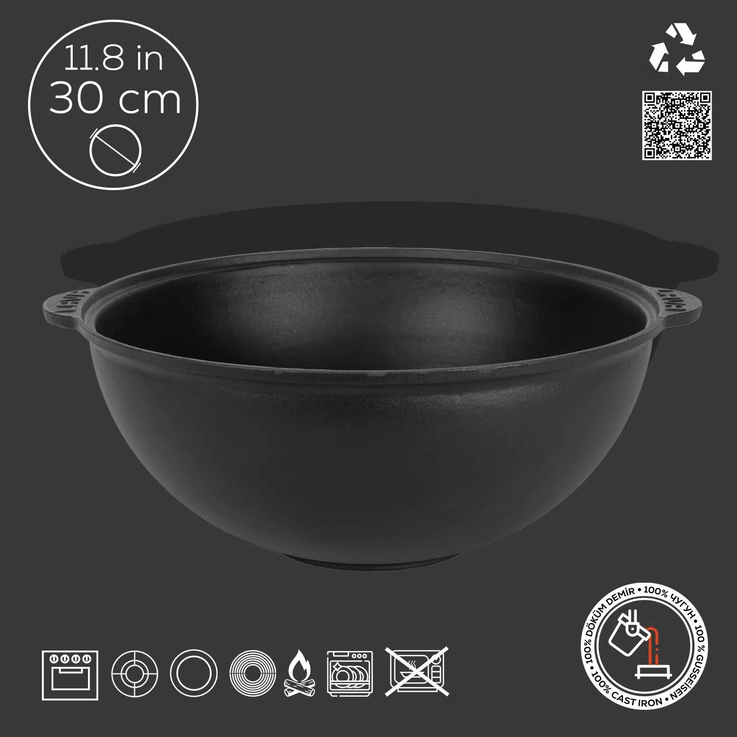 Etiketler | Lava Döküm Yuvarlak Özbek Kazanı / Tencere. Döküm Demir Yekpare Kulplu Çap(Ø)30cm. |