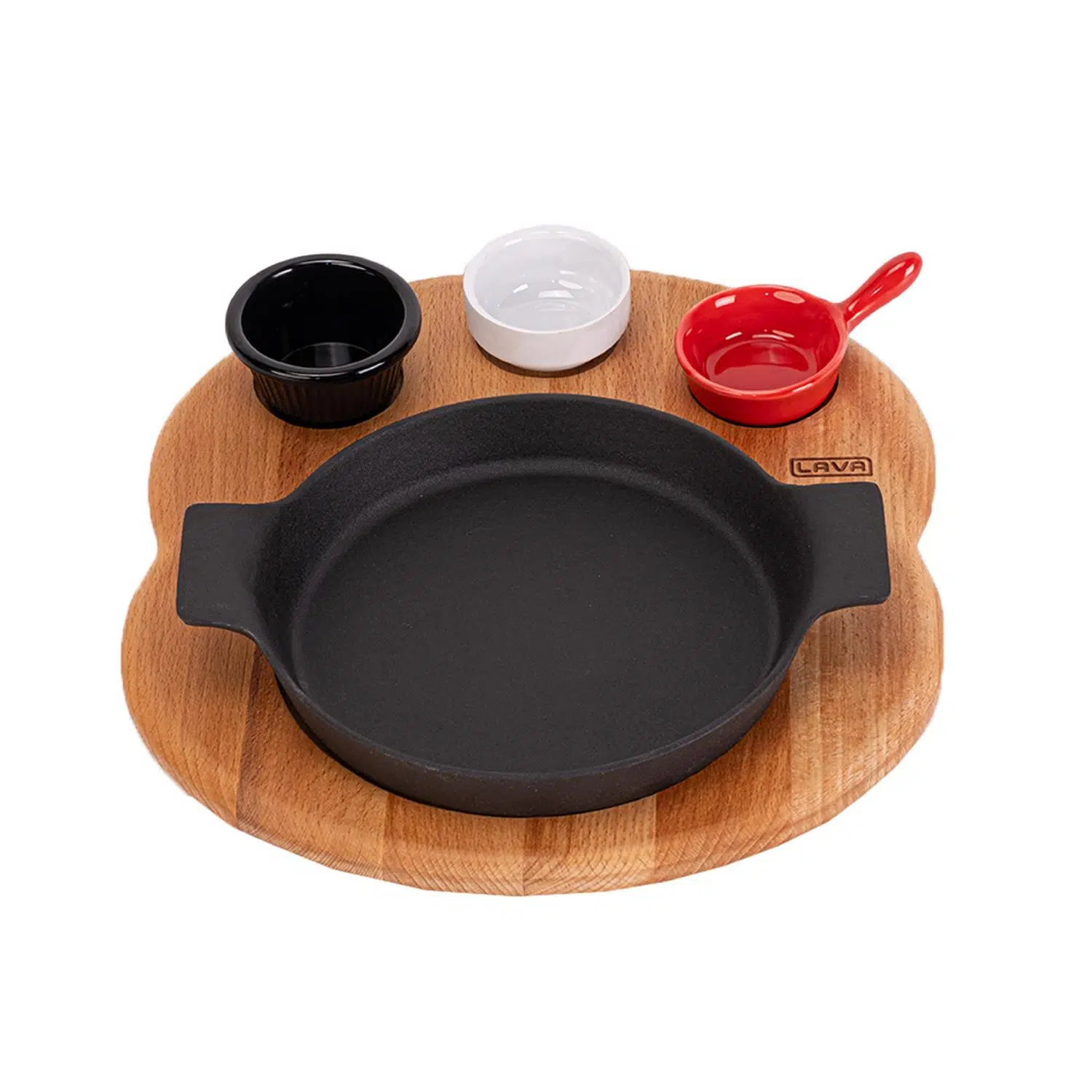 | Etiketler | Lava Döküm Yuvarlak Sahan Döküm Demir Yekpare Çift Kulplu Kayın Servis Ahşabı. Çap(Ø)18cm. (Sos kapları dahil değildir.) |